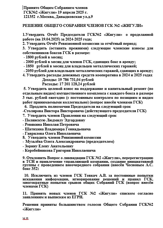 Решение Общего Собрания ГСК 2025 год