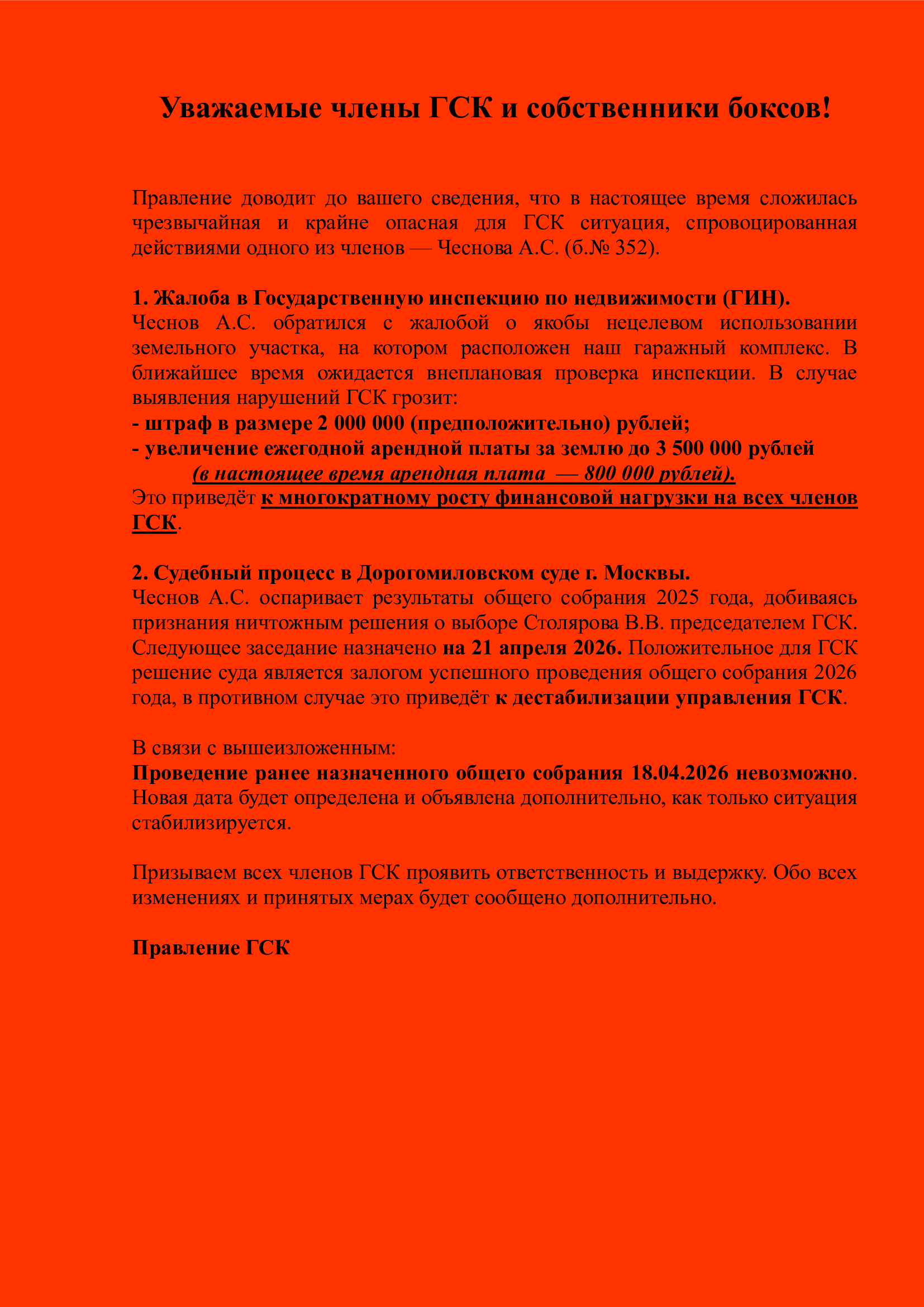 Уажаемые члены ГСК и арендаторы!